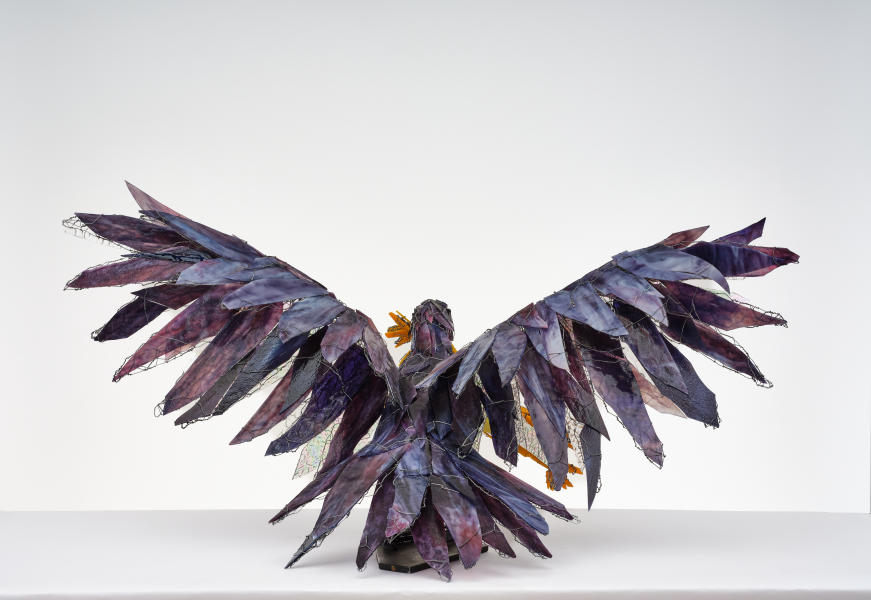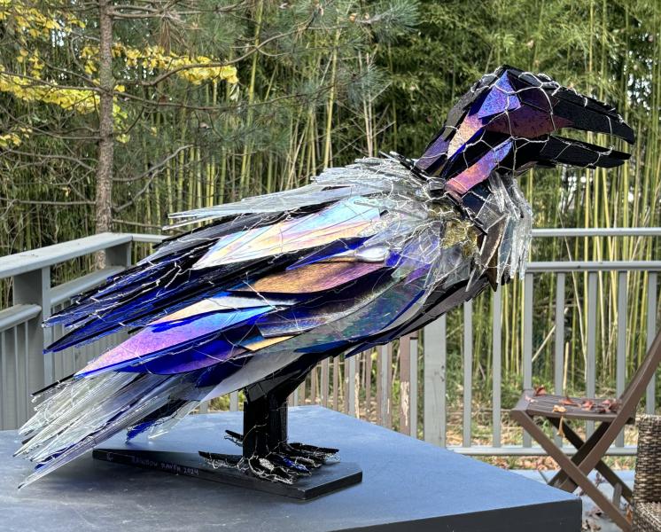 Purple Mist Raven, 2023. Metal & glass. 17 x 20 x 25 in.